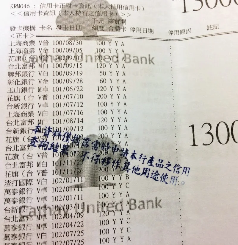 果然使用「現金卡」,在聯徵上一定會被註記,